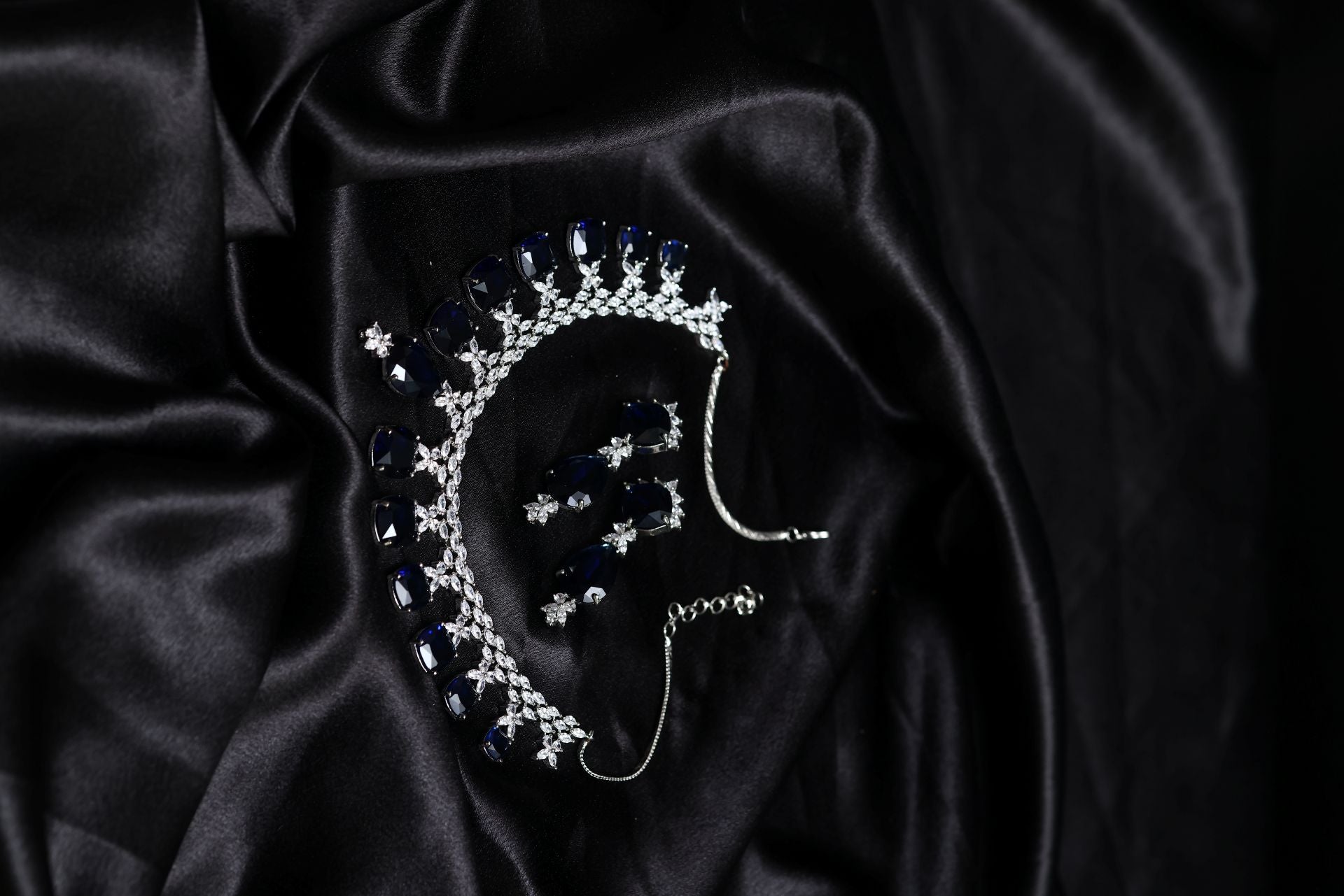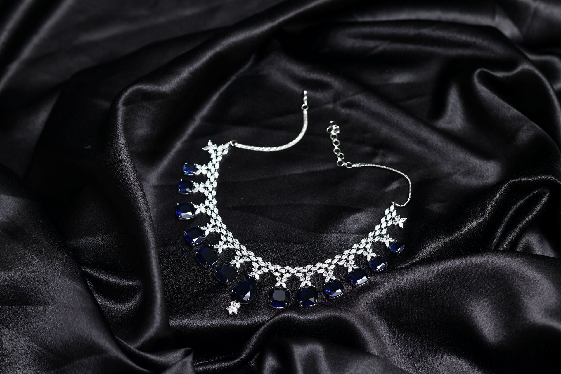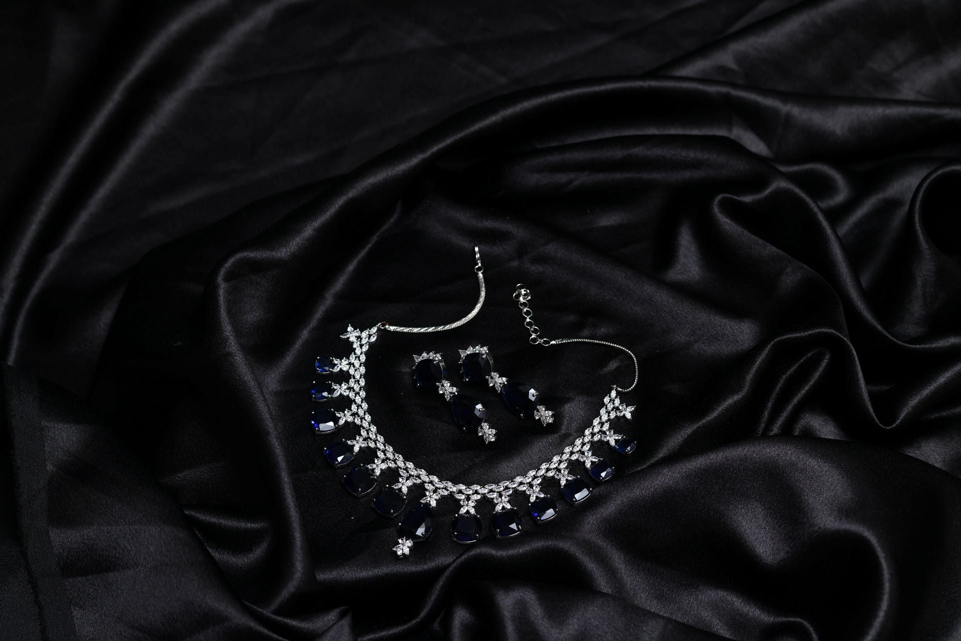 Gala Stunning Blue Sapphire Diamond Necklace Set – Regal Elegance, Timeless Sparkle