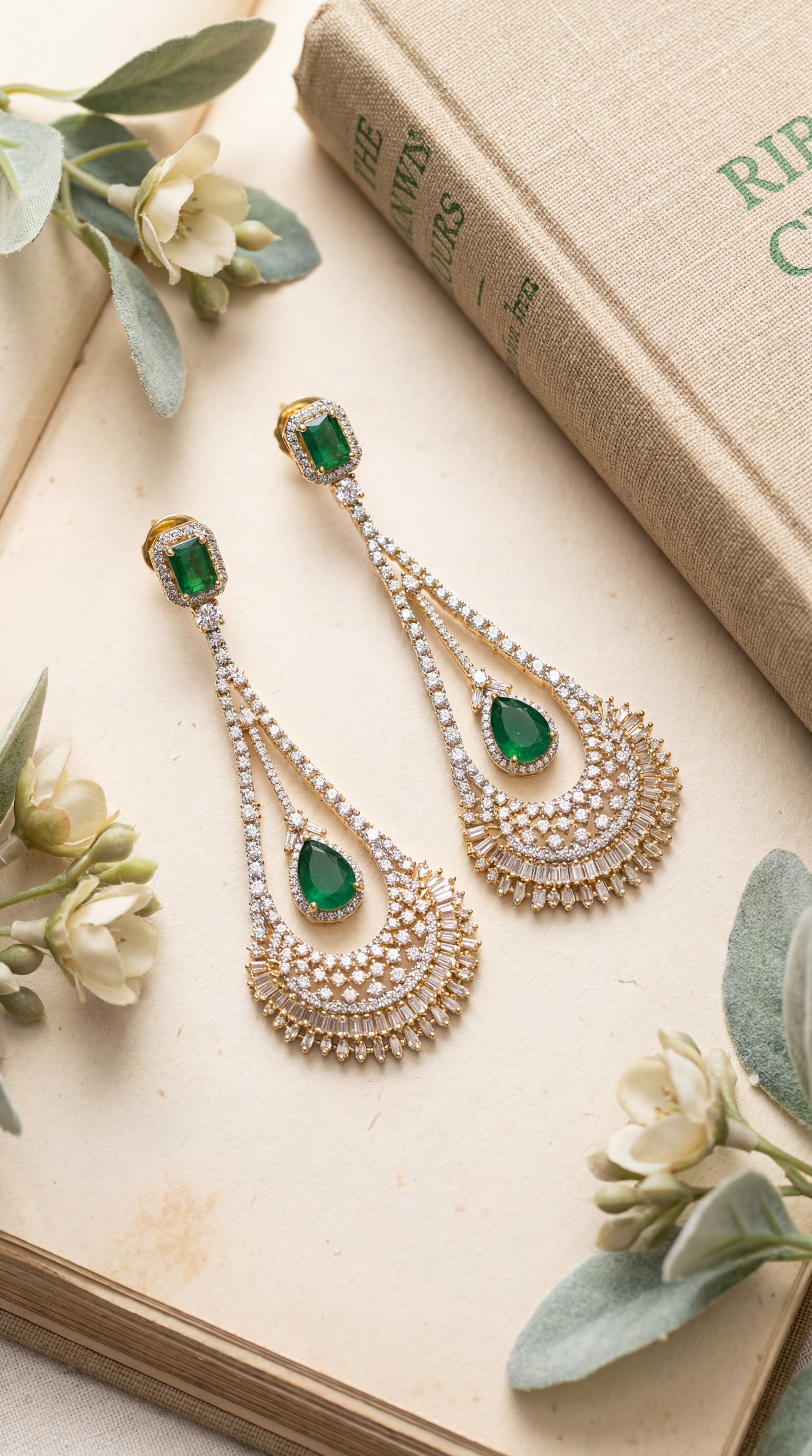 Design: Multi-layered CZ Danglers with Emerald Stud & Drop