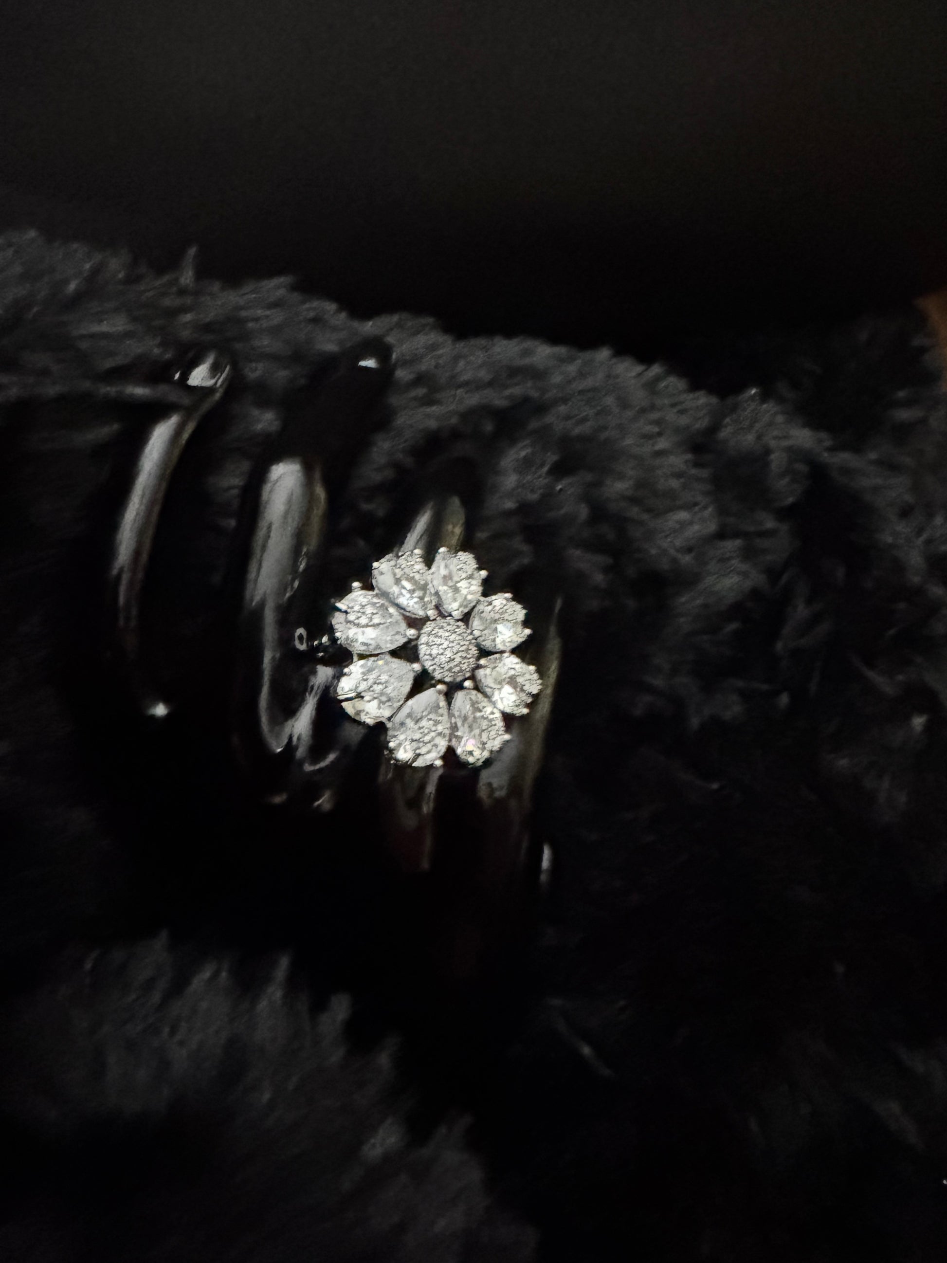The Regal Radiance Floral Statement Ring is the epitome of timeless elegance and high-sparkle glamour. Crafted in premium brass and finished with a lustrous rhodium-polished silver coating, this masterpiece captures the brilliance of fine jewellery craftsmanship.