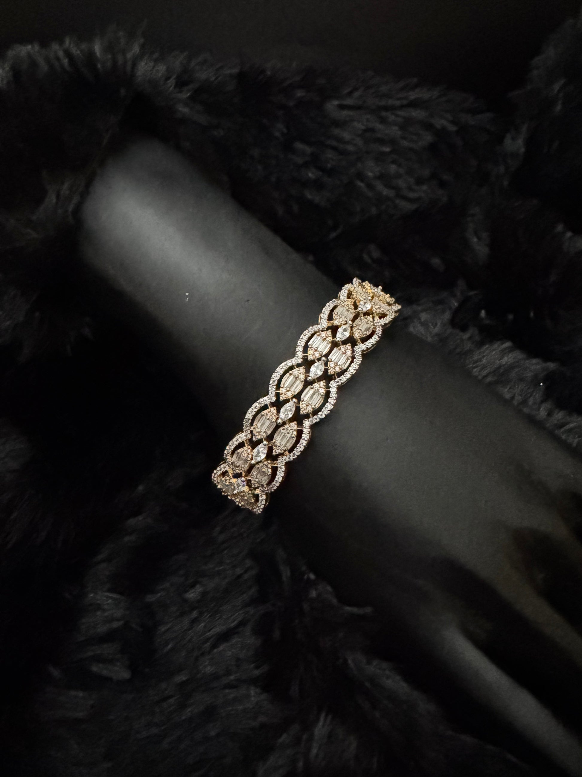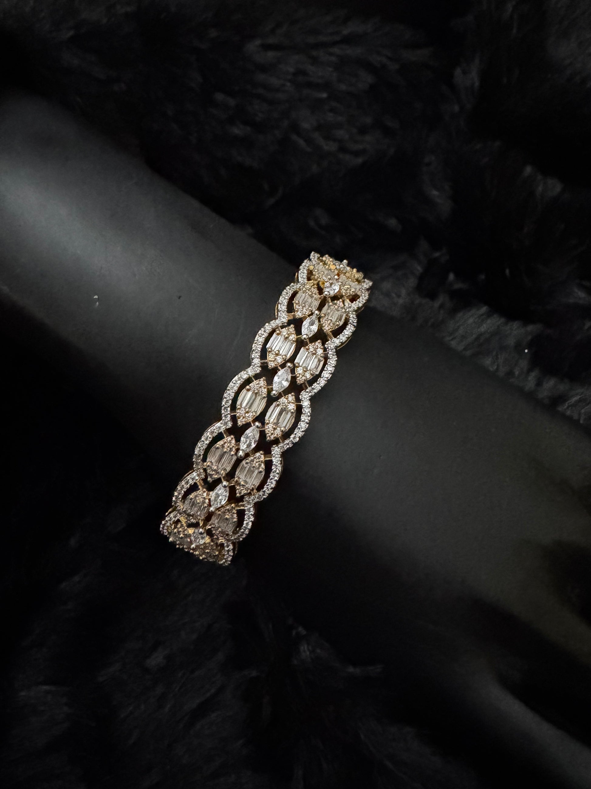 Each leaf and loop motif is carefully hand-set with premium AAA+ quality Cubic Zirconia, giving the bracelet an enchanting diamond-like brilliance. The design flows seamlessly around the wrist, creating a soft, feminine silhouette that pairs perfectly with festive wear, bridal trousseau, cocktail outfits, and everyday luxury styling.