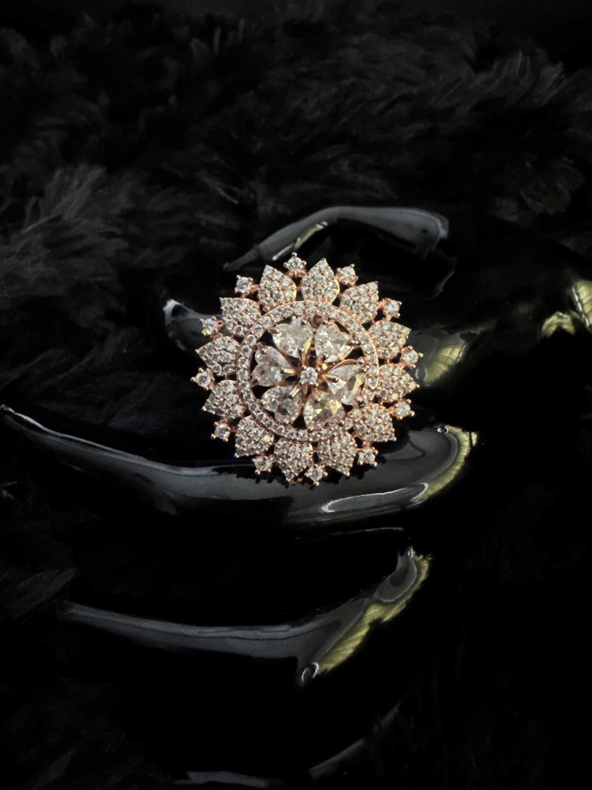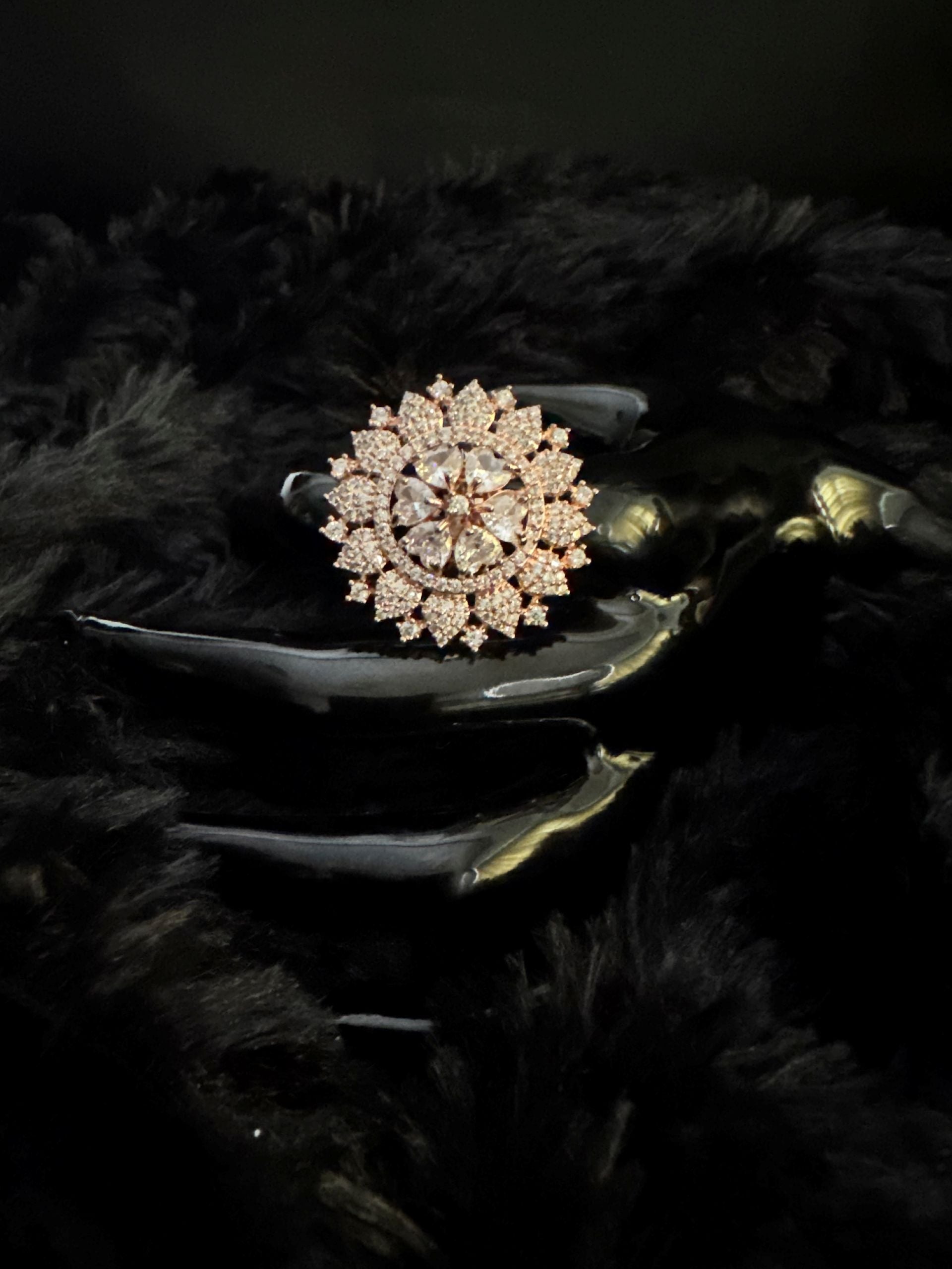 These exquisite handcrafted stone rings embody timeless beauty and sophistication. Meticulously designed with premium materials, each ring features radiant stones that sparkle with every movement, set in a finely polished Rose gold-toned base that adds a touch of luxury to any ensemble.