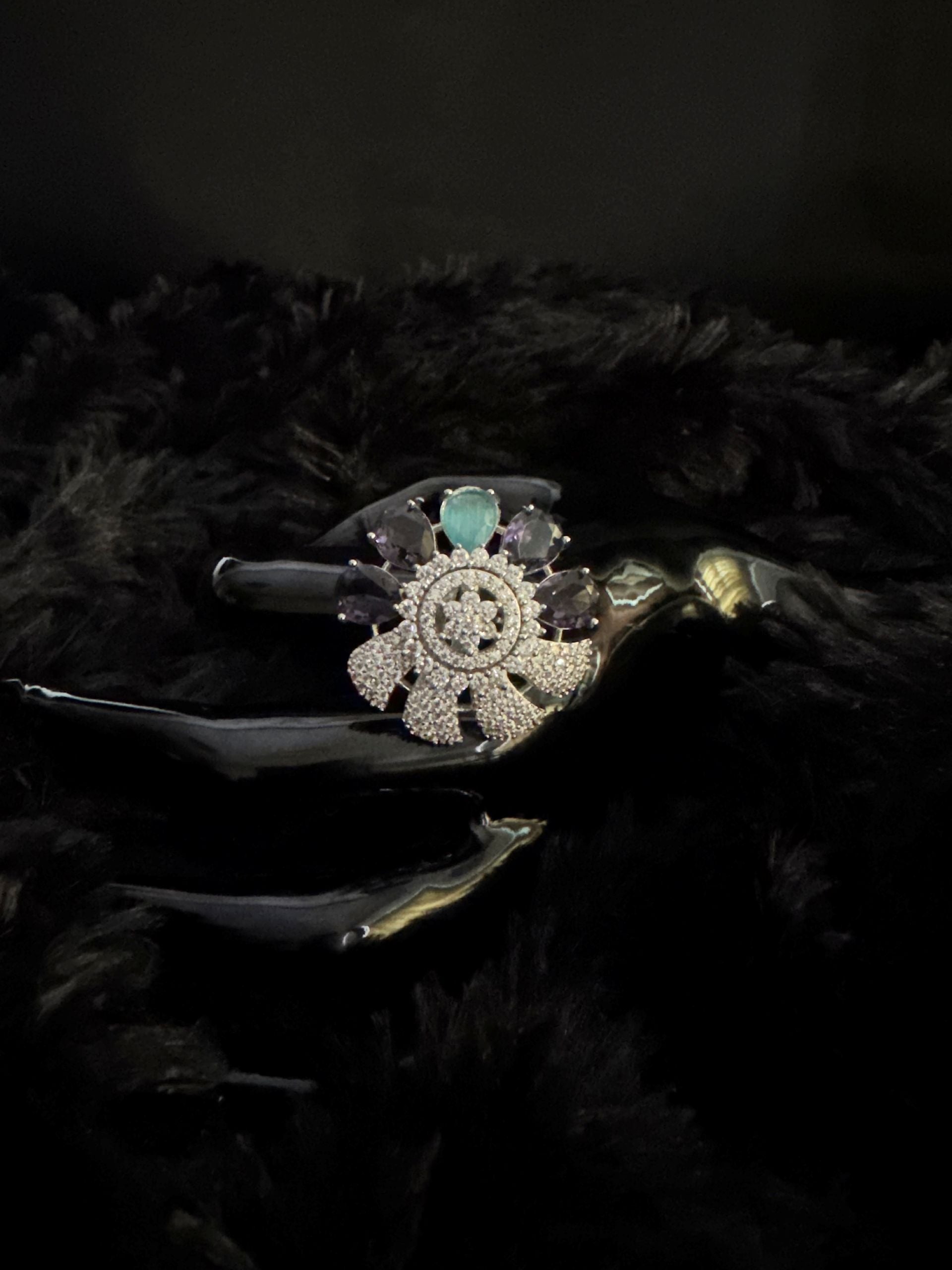 These exquisite handcrafted stone rings embody timeless beauty and sophistication. Meticulously designed with premium materials, each ring features radiant stones that sparkle with every movement, set in a finely rhodium-polished silver coating base that adds a touch of luxury to any ensemble.